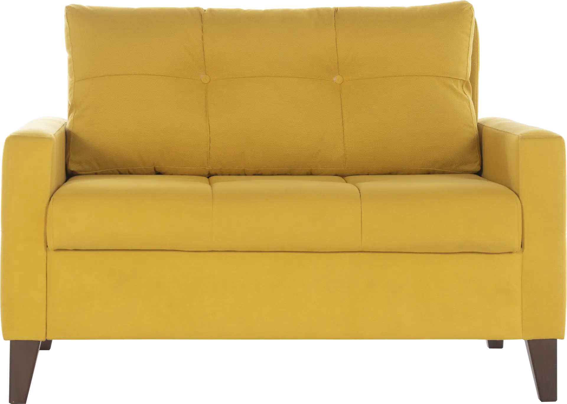 To maintain the vibrant yellow finish and fabric integrity, our expertise suggests regular dusting or light vacuuming with an upholstery attachment to prevent debris from settling into the weave. For accidental spills, the performance polyester can typically be spot-cleaned using a soft cloth dampened with mild soap and water. Always blot the area rather than rubbing to preserve the tufted cushion texture.