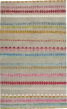 Balance your interior decor with a colorful palette from the Viking Stripe rug. Designed with unique geometric patterns for a dimensional look. Hand knotted with 50% wool, 30% cotton and 20% viscose. Professional clean only.