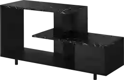 Enhance the look of your living space with the contemporary styling of this Art-Deco Vilenah inspired tv stand. This black with black marble top entertainment console with sturdy round metal legs, features open concept shelving and one drawer ideal for media storage solutions. This console unit accommodates all TV sizes with a center stand and will be a stand out in your living room, family room, den, or basement space. Customer assembly is required.