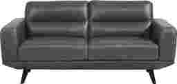 Look no further than the Villa Capistrano loveseat for the best of mid-century modern style. Upholstered in top grain leather where the body touches, this piece exudes sophistication with its chambray blue color. Details like contrast stitching and channeled back cushions create a tailored look. Tapered legs in a black finish enhance its chic, retro-inspired flair. Upholstery: Top grain leather where the body touches and polyurethane fabric sides and backs.