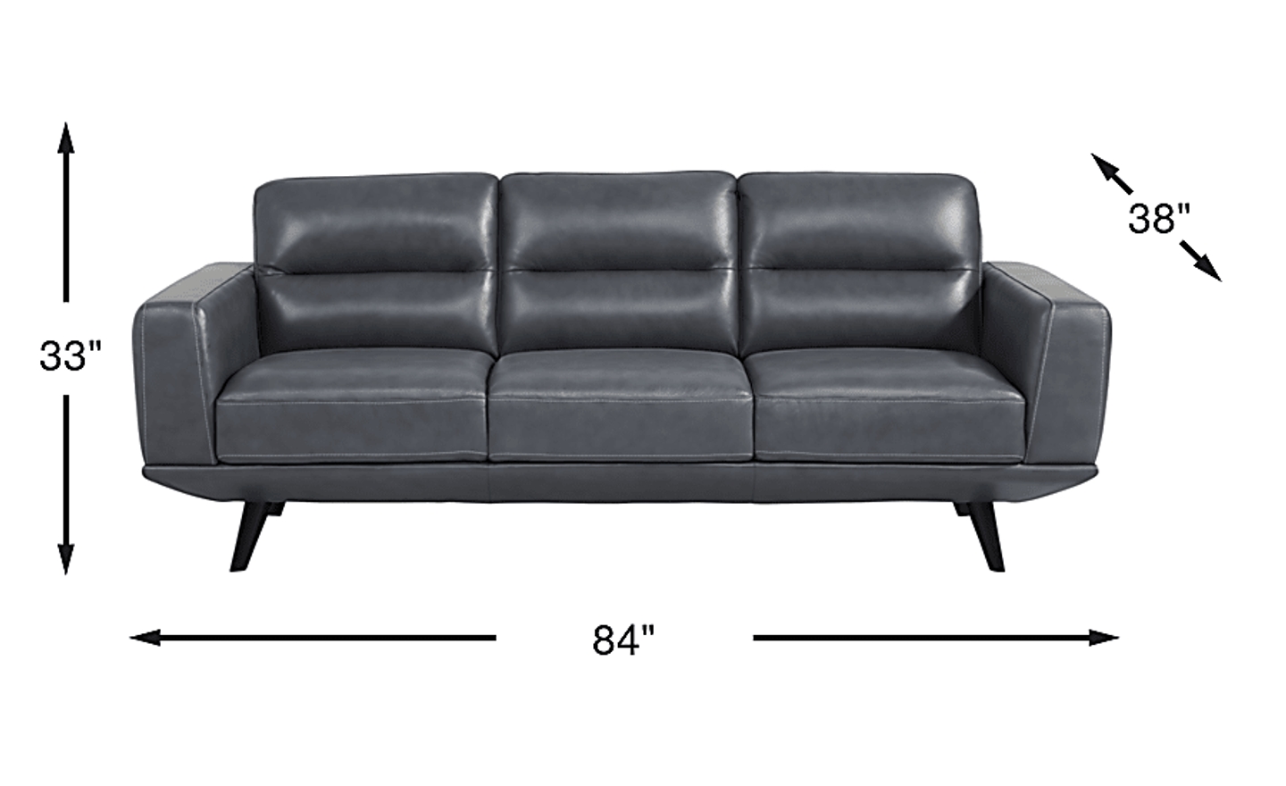 Designed with mid-century modern style, the Villa Capistrano sofa instantly defines luxury. Upholstered in top grain leather where the body touches, this piece exudes sophistication with its chambray blue color. Details like contrast stitching and channeled back cushions create a tailored look. Tapered legs in a black finish enhance its chic, retro-inspired flair. Upholstery: Top grain leather where the body touches and polyurethane fabric sides and backs.