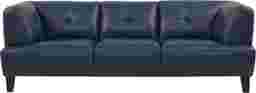 Sophisticated seating with the indulgent comfort of top grain leather upholstery where the body touches, the Villa Capri sofa is a sleek selection. Featuring subtle tufting on the attached cushions and interior arms and chic tapered legs, this sumptuous sofa is rendered in a deep blue color. Top Grain Leather Where the Body Touches and Blended Leather (Polyurethane Fabric Blended with Leather Particles) Sides and Backs.