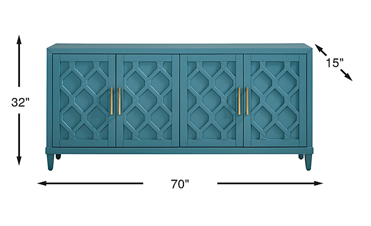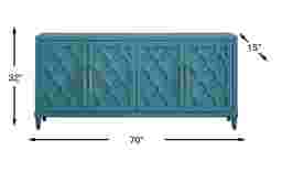 Absolutely. At 70 inches wide, this cabinet offers a stable and expansive surface that can accommodate most large flat-screen televisions. Its contemporary "glam" styling, featuring sculpted diamond-patterned doors and a soothing aqua finish, allows it to function as a chic media console that elevates the design of a modern living room or entertainment space.