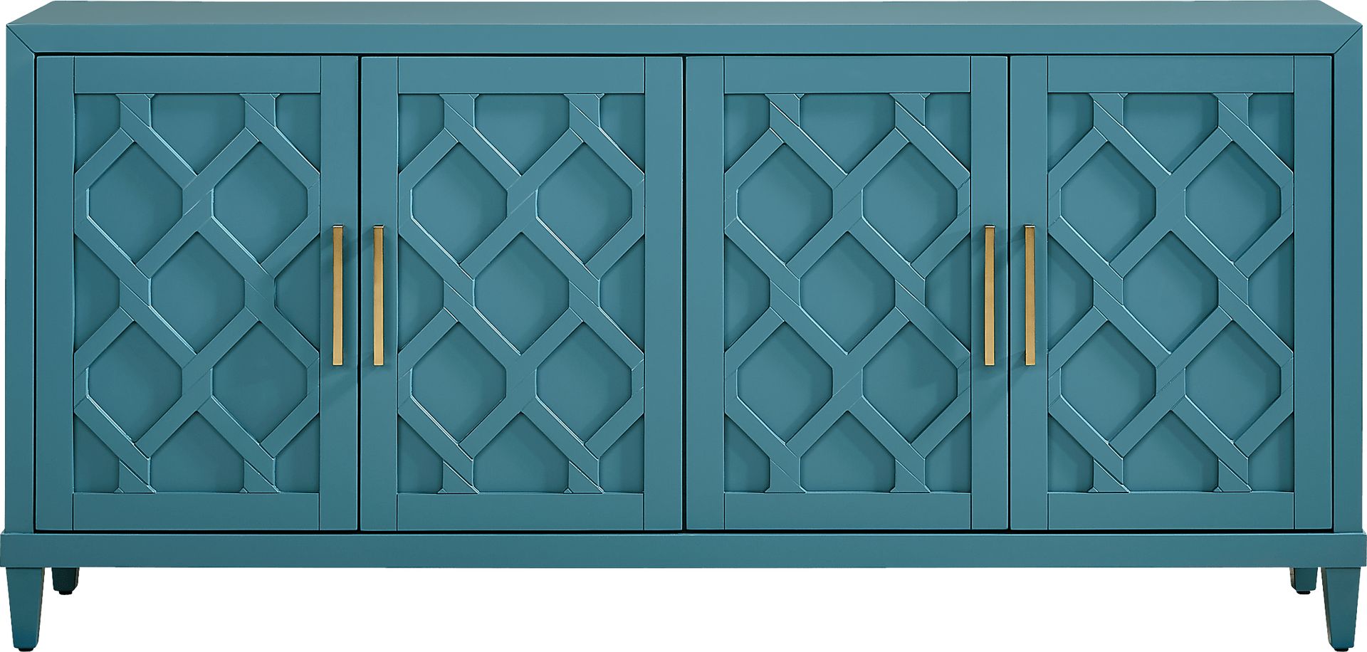 The sculpted diamond-patterned doors create a dramatic, three-dimensional texture that serves as a bold architectural statement. This design choice, paired with the sophisticated aqua finish, adds "très chic" refinement to a space. It is specifically engineered to act as a focal point in contemporary or "glam" decor schemes, reflecting light and adding visual depth to the room.