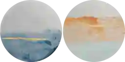 These beautiful pieces are hand painted on aluminum with gold leaf accents. It features two circular art displays with stunning blends of soft colors.
