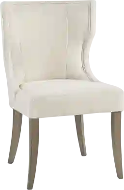 Villagrove Cream Side ChairDefine your dining area with the elegance of the Villagrove dining chair. Upholstered in a rich cream fabric, this wingback style dining chair features clean lines and curve, for a sophisticated silhouette. The straight rubber wood legs feature a smooth reclaimed gray wood finishes that complements the upholstery to create a beautiful transitional look in your dining room. Customer assembly is required. Max weight capacity 300 lbs.