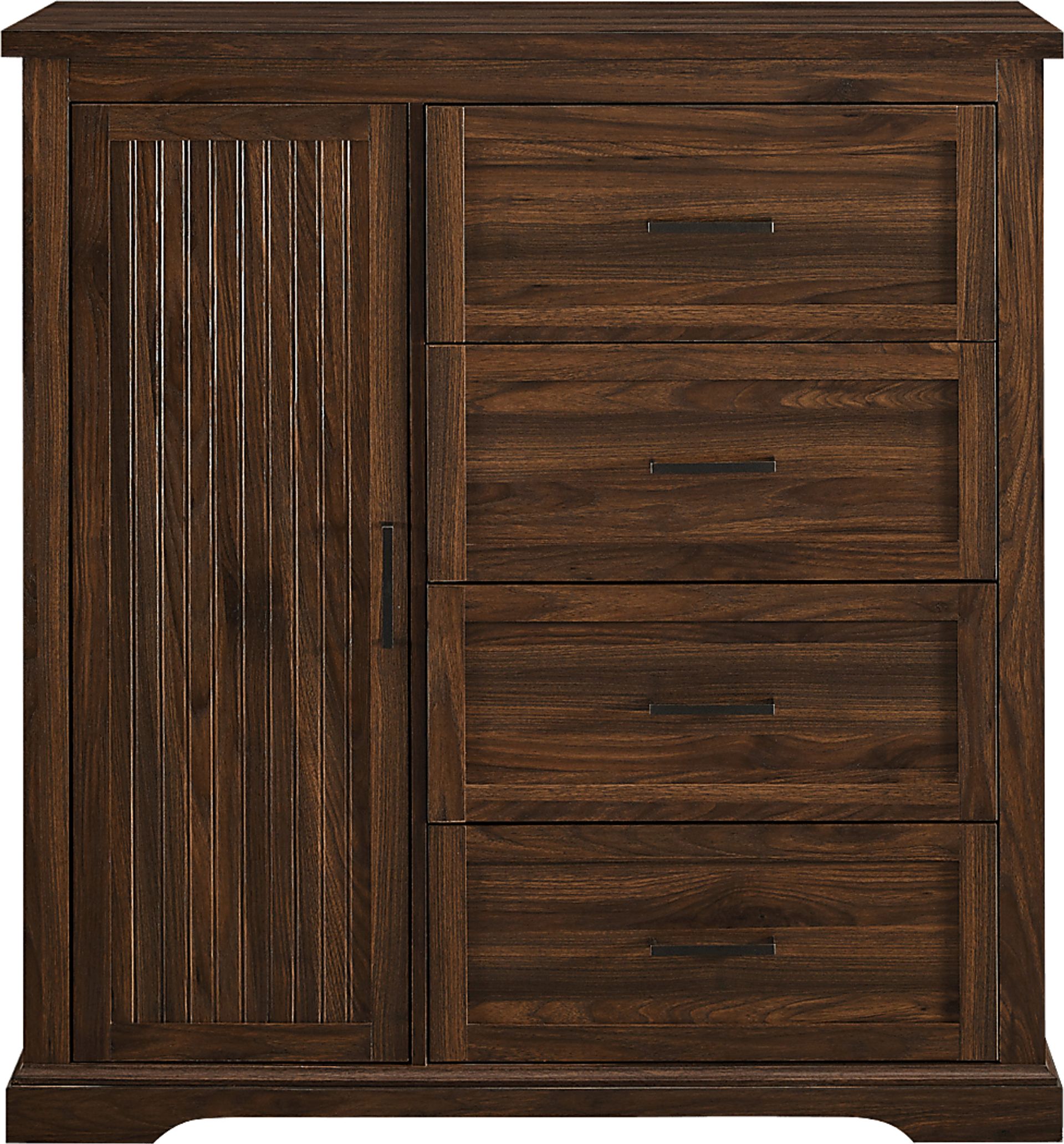 This Villalonga wardrobe is the bedroom organization superstar youve been looking for. A combination of one cabinet and four drawers offer an array of closed storage options to house your abundance of clothing, accessories, or linens. Three adjustable shelves behind the door allow you to customize the unit for your needs. The cabinet is mounted with adjustable soft-close hinges, and the drawers feature telescoping metal glides so you can open and close the armoire smoothly. Grooved and framed detailing lends the piece a classic and sophisticated vibe that will fit in with transitional, farmhouse, or even coastal interior design styles. Customer assembly is required.