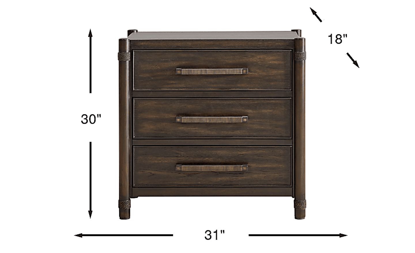 With a substantial width of 31 inches, this nightstand provides a significant presence that is perfectly scaled for larger master suites and king-sized beds. While more compact "bedside tables" may look undersized next to a large frame, this three-drawer model offers the visual weight and storage capacity required for a well-proportioned bedroom layout.