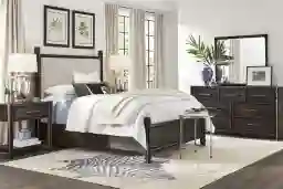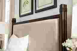 Blending timeless craftsmanship with plush comfort, the Vineyard Estates upholstered bed creates a bedroom centerpiece made for relaxed sophistication. Featuring a tailored fabric headboard, with the collection's signature post design, this piece brings a soft, yet stately, touch to its beautiful silhouette. Mattress and foundation (if required) sold separately.