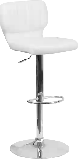 The Vinnie white adjustable swivel barstool with vertical line design upholstery will make an attractive statement in the home. The height adjustable swivel seat adjusts from counter height to bar height with the handle located below the seat. The chrome footrest supports your feet while also providing a contemporary chic design. To help protect your floors the base features an embedded plastic ring. Customer assembly is required.