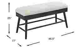 No more reservations with the Viola counter height bench's lively feel, bringing the goodwill and cheer of a fun night out home. Constructed of wood solids and ash veneers, this contemporary piece boasts an irresistible set of color contrasts between its black finish and soft gray upholstered seat. Hidden inside the seat is storage for dining room necessities while the base features canted legs and a rectangular support system for an irresistible minimalist silhouette.