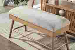This bench is constructed with high-quality ash veneers over a stable base. In a dining environment, veneers are often preferred because they provide the beautiful, consistent grain of natural wood while offering superior resistance to the warping or cracking that can be caused by the humidity and temperature shifts common in kitchens. This ensures the light oak finish remains beautiful and structurally sound over time.