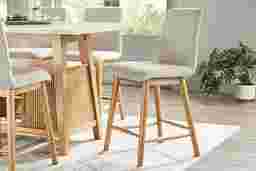 No more reservations with the Viola counter height stool's lively feel, bringing the goodwill and cheer of a fun night out home. This contemporary piece boasts an irresistible set of complementary colors with ash veneers in a natural finish and soft gray upholstered seat and back. The base features canted legs with a square support and footrest for an irresistible minimalist silhouette.
