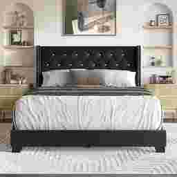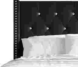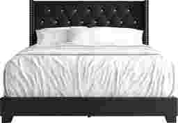 Transform your bedroom into a sophisticated haven with this exceptional, long-lasting Vistalane bed. Crafted from solid wood and upholstered in high-quality fabric, it's a perfect choice for any space. Featuring a button-tufted headboard with a glamorous diamond design, it adds charm and elegance. Hand-applied chrome nail head trim along the wingback enhances refinement. Customer assembly is required.