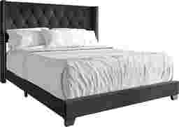 Transform your bedroom into a sophisticated haven with this exceptional, long-lasting Vistalane bed. Crafted from solid wood and upholstered in high-quality fabric, it's a perfect choice for any space. Featuring a button-tufted headboard with a glamorous diamond design, it adds charm and elegance. Hand-applied chrome nail head trim along the wingback enhances refinement. Customer assembly is required.