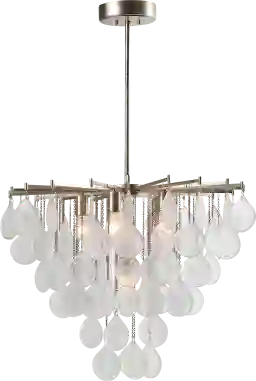 The Viviani View chandelier features a classic shape with sumptuous tear drop seeded glass suspended on fine chains refracting light beautifully. Transcending traditional design to blend in with even more contemporary interiors and finished in a rich antique bright silver leaf. Professional installation by an electrician recommended.