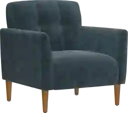 To create a cohesive and sophisticated space, we recommend pairing this dark blue upholstery with neutral tones such as beige, light gray, or cream. For a more dynamic look, you can introduce high-contrast accessories like a vibrant red rug or metallic accents. The transitional design, featuring button tufting and tapered arms, allows it to blend seamlessly with both modern and traditional decor styles.