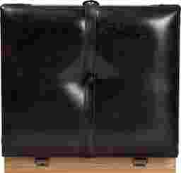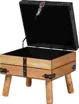 Give your space a hint of rustic flair with the charming Voisin storage ottoman. Comprised of horizontal wood panels showcasing a warm oak finish, its top lifts up to reveal ample storage space for blankets and more. A strap and brass finished metal studs lend a charming, vintage trunk inspired look. Angled legs complete the look, making this storage ottoman a fantastic addition to the modern home. Customer assembly is required.