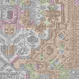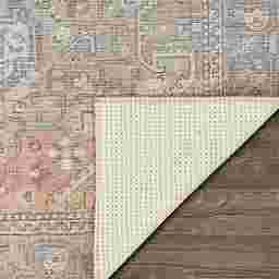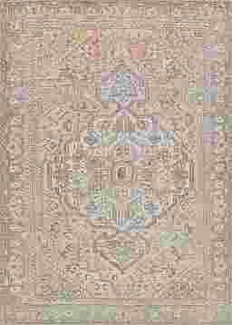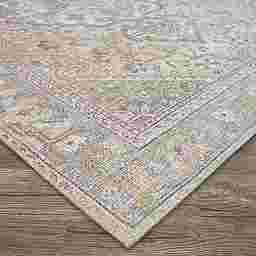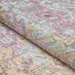 This rug features a muted palette of apricot, peach, blue, and yellow with a vintage-inspired distressed finish. This "lived-in" look makes it highly adaptable; it can soften a modern, industrial space with a touch of warmth or serve as a foundational piece in a traditional or rustic room. The royal imperial motifs are digitally printed to provide high-end detail while remaining subtle enough to blend with eclectic furniture.