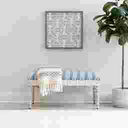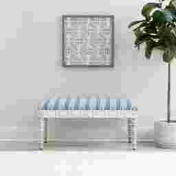 Introducing our Vontue II seashell bench, an upholstered coastal charmer that brings the beach vibes to your home Constructed from mango wood, MDF, and adorned in a refreshing white finish, this bench is more than just a seat it's a seaside escape. Whether in your entryway or adding charm to your bedroom, this small bench is a cozy coastal retreat. Dive into comfort and style with our seashell bench, where every moment feels like a day spent shoreside. Customer assembly required.