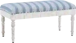 While the seashell charm and striped pattern are quintessential coastal elements, the classic turned legs and sophisticated nailhead trim allow this bench to transition beautifully into various design styles. It can serve as a refreshing pop of color in a traditional bedroom or add a touch of nautical character to a modern farmhouse entryway.