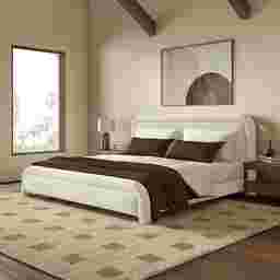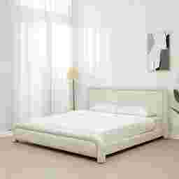 Transform your bedroom into a tranquil oasis with the Vorel bed in a delicate cream color. Made with comforting 100% polyester chenille, this bed is designed to keep you comfortable, while add a soft touch to your room. The cream shade evokes feelings of warmth and serenity, creating a calming atmosphere - perfect for a good night's rest. Experience the luxury of the soft-textured Vorel and get ready to take your home decor to the next level. Enjoy the discreet charm of its color which makes it a versatile addition to any interior design style. With a synthesis of elegance and functionality, this cream-colored king size bed ensures comfort merged with a touch of elegance. Customer assembly required.