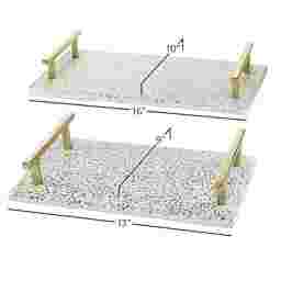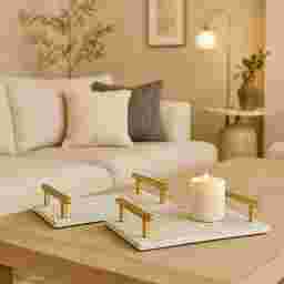 Finding the correct scale is key to a curated look. This set includes two complementary sizes—a 16-inch large tray and a 12.8-inch small tray—allowing you to layer them for visual depth or use them in separate rooms. For a standard coffee table, our experts recommend a tray that covers roughly one-third to one-half of the surface area, leaving enough space for books or a vase. The smaller tray is perfectly sized for a bedroom dresser or bathroom vanity to organize jewelry or apothecary jars.
