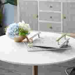 While designed as glamorous decorative accents, the construction is highly functional. The solid marble stoneware provides a flat, stable base that is ideal for serving cocktails or small plates. The gold aluminum handles are securely attached for confident transport. For best results, we recommend using coasters to protect the tray's ash white finish from potential moisture rings from glassware.