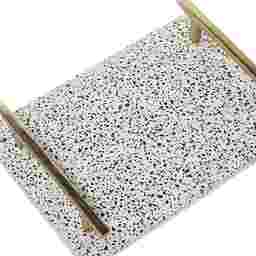 These trays are meticulously crafted from marble stoneware, a high-quality material that provides the substantial weight and luxurious feel of natural stone while offering enhanced durability. The set has a collective weight of over 11 lbs, ensuring the trays remain stable on your furniture. The integrated side handles are made of polished aluminum, which is naturally rust-resistant and provides a secure, stylish grip for effortless portability.