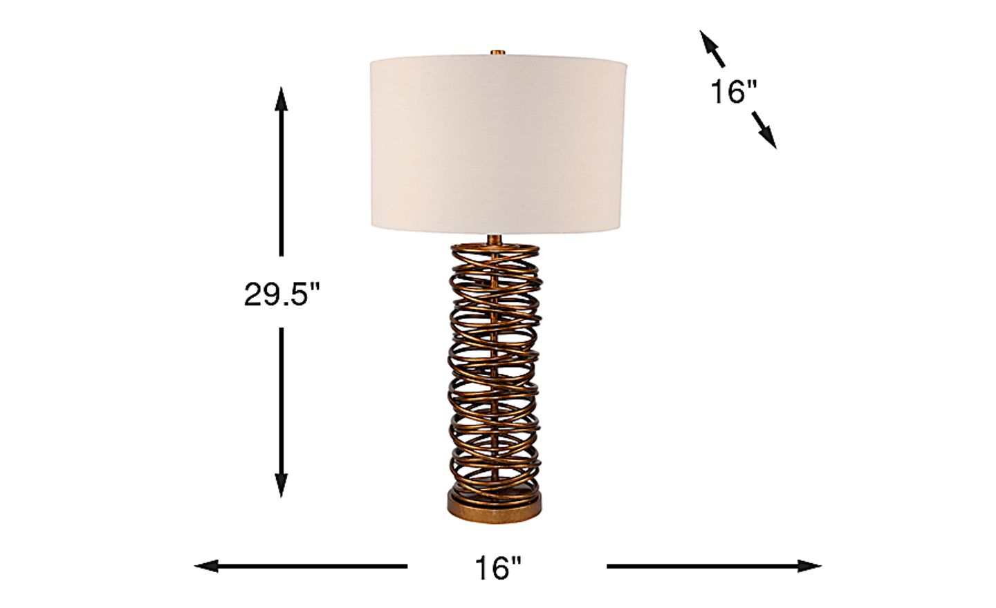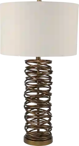 A striking balance of artistry and illumination, the Wakefield table lamp brings sculptural elegance to any space. Its stacked coil base in a warm gold finish creates a dynamic, open design that draws the eye while maintaining a light, airy feel. Topped with a classic linen drum shade, the lamp softens the look with warm, diffused light that complements a variety of interiors. Whether you're reading, relaxing or setting the mood, this lamp features a convenient three-way switch to adjust the brightness to suit the moment.