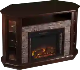 Warm up your style with the Wakerobin II electric media console fireplace. Handsome, lifelike stacked stone surrounds the firebox; wide open media shelf stores entertainment equipment or electronics. A convertible mantel fits this curio fireplace into any corner nook or room, while LED lit cabinets show off vases, tchotchkes, or DVDs. Consider your space heating blues cornered with this convertible media fireplace centering your living room, anchoring an entry parlor, or serving up rustic chic style in the dining room. Energy efficient LED bulbs light the fire, a cost effective way to ignite bliss in any room. A user friendly remote control offers 4-way adjustability to customize the fireplace from the comfort of your sofa. Flames and logs each have 5-level adjustment that can switch on or off. An automatic shutoff and glass that remains cool to the touch ensure the fireplace warms safely. Turn off the heat to enjoy the fireplace ambiance year round! Customer assembly is required.