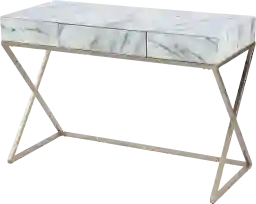 Cross contemporary style off your to-do list with this faux marble Willano desk. Glass-top work surface provides plenty of room to finish homework or organize bills while the gold metal frame adds a touch of glam. Push-to-open drawer offers functionality with a seamless design while keeping your office accessories tucked away. Place this sleek desk in your entryway as a console table or in your home office to work from home in modern style. Customer assembly is required.