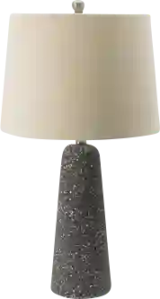 The Walsh Street lamp uses subtle speckles on a stone base in black to create a distinctive modern tabletop look. Ideal for sofa sides and nightstands this lamp is topped with a beige drum shade that emits a soft diffused light throughout the room. Effortlessly add this lamp to contemporary modern and mid-century modern decor. Partial assembly may be required.