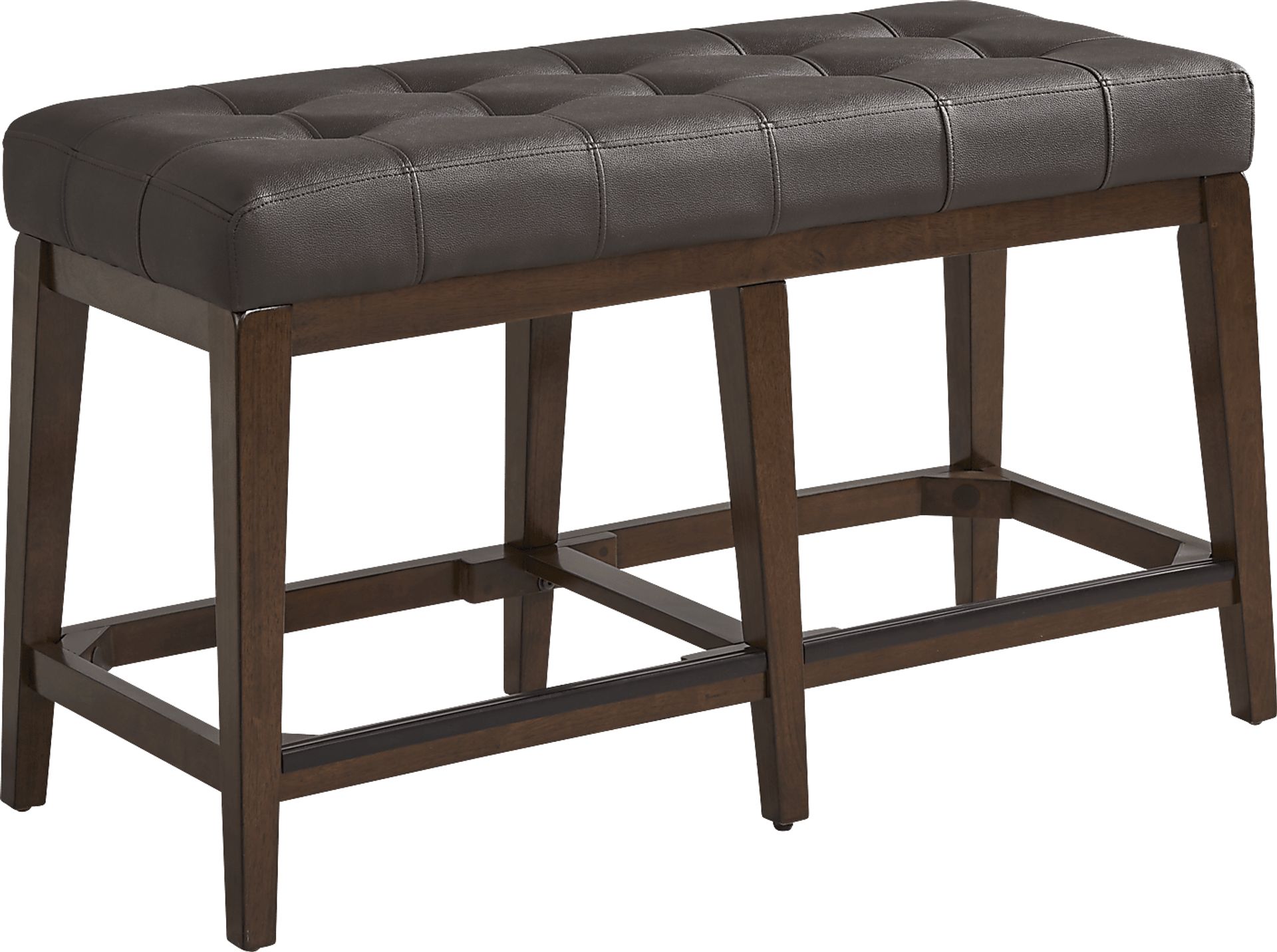 Clean lines and old world charm make the Walstead Place counter height bench seat a perfect complement for dining comfort. Transitional in style, the bench invites intimacy and closeness. Its sturdily crafted with birch and cherry veneers finished in a warm, inviting brown. Tufted brown upholstery adds a delightfully comfortable cushion and a fashionable look fit for any dining room.