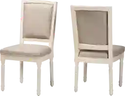 Craft a charming dining room atmosphere with the old-world inspired design of the Wanskuck white side chair, set of 2. This chair is comprised of a study wood frame padded with plush layers of foam and upholstered in smooth fabric. With a square backrest, this chair is adorned with a vintage nail head trim as well as molded accents that convey a classic, antique-like feel. The Wanskuck features turned legs that lends an elegant outline while providing the chair with excellent stability and support. A remarkable piece that encapsulates old-fashioned glamour, the Wanskuck elevates any occasion. Customer assembly is required.