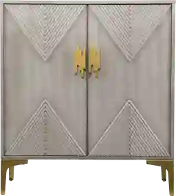 This cabinet is a hallmark of contemporary and transitional design. The geometric texture on the door fronts adds modern visual interest, while the tapered legs and gold-finished hardware provide a touch of mid-century modern elegance. It pairs seamlessly with neutral palettes of white, cream, or navy, and the gold accents help bridge the gap between cool gray tones and warmer room decor.