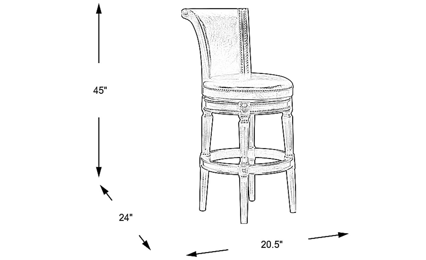 Artfully designed, the Warrin swivel barstool is a stately masterpiece. Crafted of hardwood solids with a warm brown finish, its classic traditional style is reinforced by intricate carving details and nailhead accents. Smooth brown upholstery with a leather-like feel elevates this barstool's luxurious look. Features swivel movement with memory return and a circular footrest for added comfort and convenience.