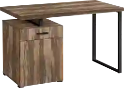 Maximize your home office space and your productivity with this stylish Washita computer desk with storage. The thick-panel floating desktop provides room for the essentials you need to work and allows you to use the top of the drawer unit as an extra surface. Finished in the same medium brown reclaimed wood-look laminate as the desktop, the drawer unit includes 1 drawer and 1 large storage beneath offering lots of space for items you want to keep off the work surface. The drawer unit is reversible and can be installed on the left or right side according to your preference. Supporting the desk is a metal U shaped leg in a contrasting black finish completing the modern look. Customer assembly is required.