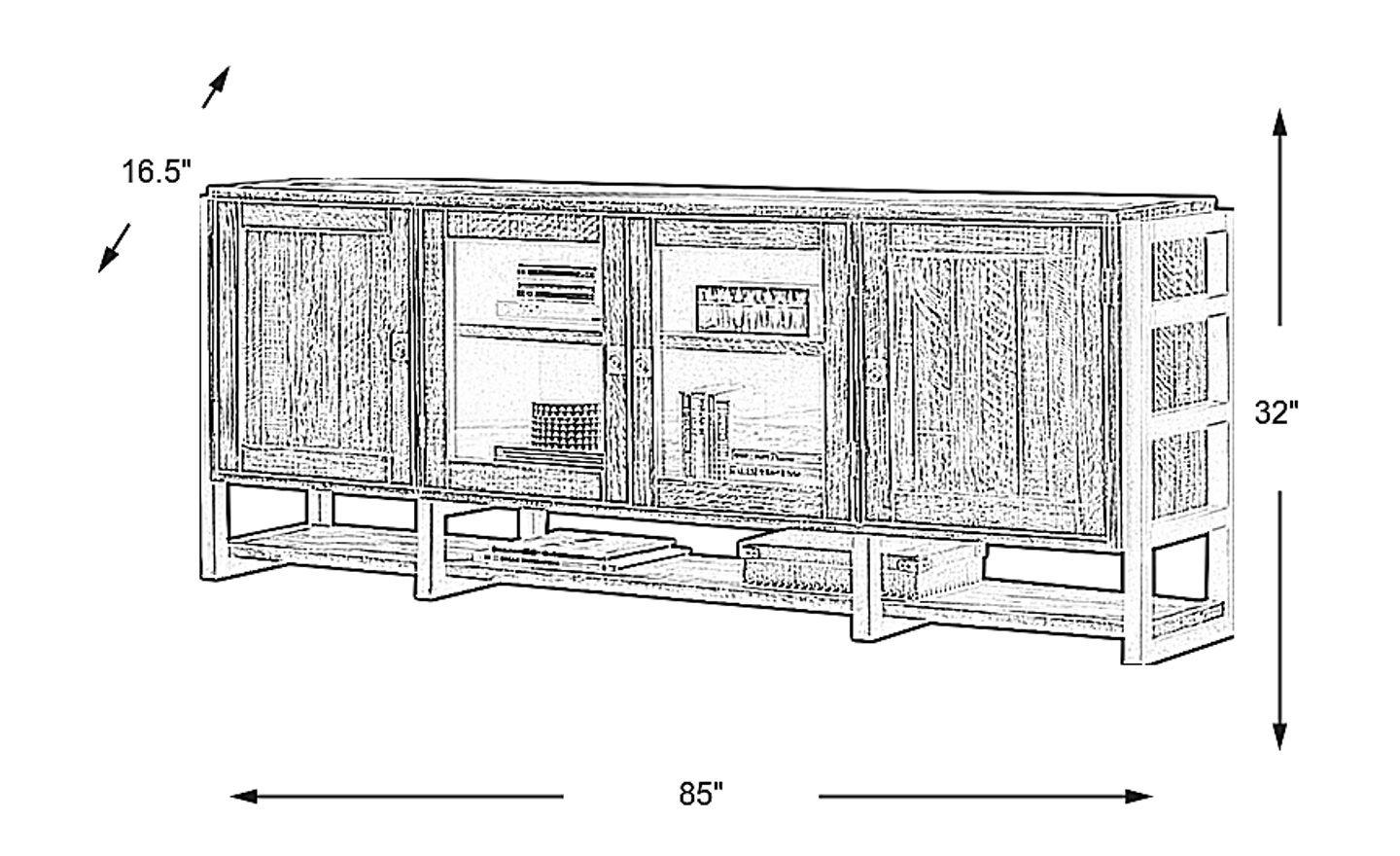 85.00"w x 16.50"d x 32.00"h