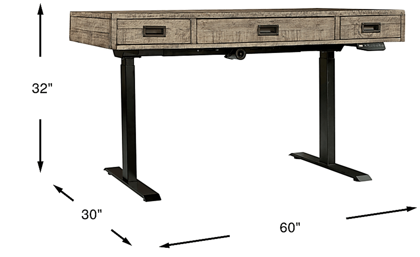 Complete your home office space with the versatile and stylish Water Mill adjustable writing desk. This rustic piece comes in a cinder gray finish and features three drawers that are perfect for storing a keyboard, writing materials and more. A sleek black adjustable base can be raised or lowered to your desired height, giving you the ability to customize your working environment from the comfort of your home.