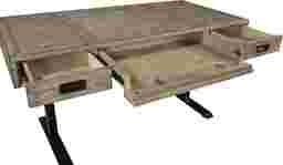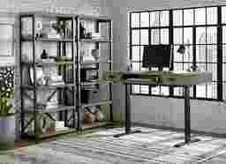 Complete your home office space with the versatile and stylish Water Mill adjustable writing desk. This rustic piece comes in a cinder gray finish and features three drawers that are perfect for storing a keyboard, writing materials and more. A sleek black adjustable base can be raised or lowered to your desired height, giving you the ability to customize your working environment from the comfort of your home.