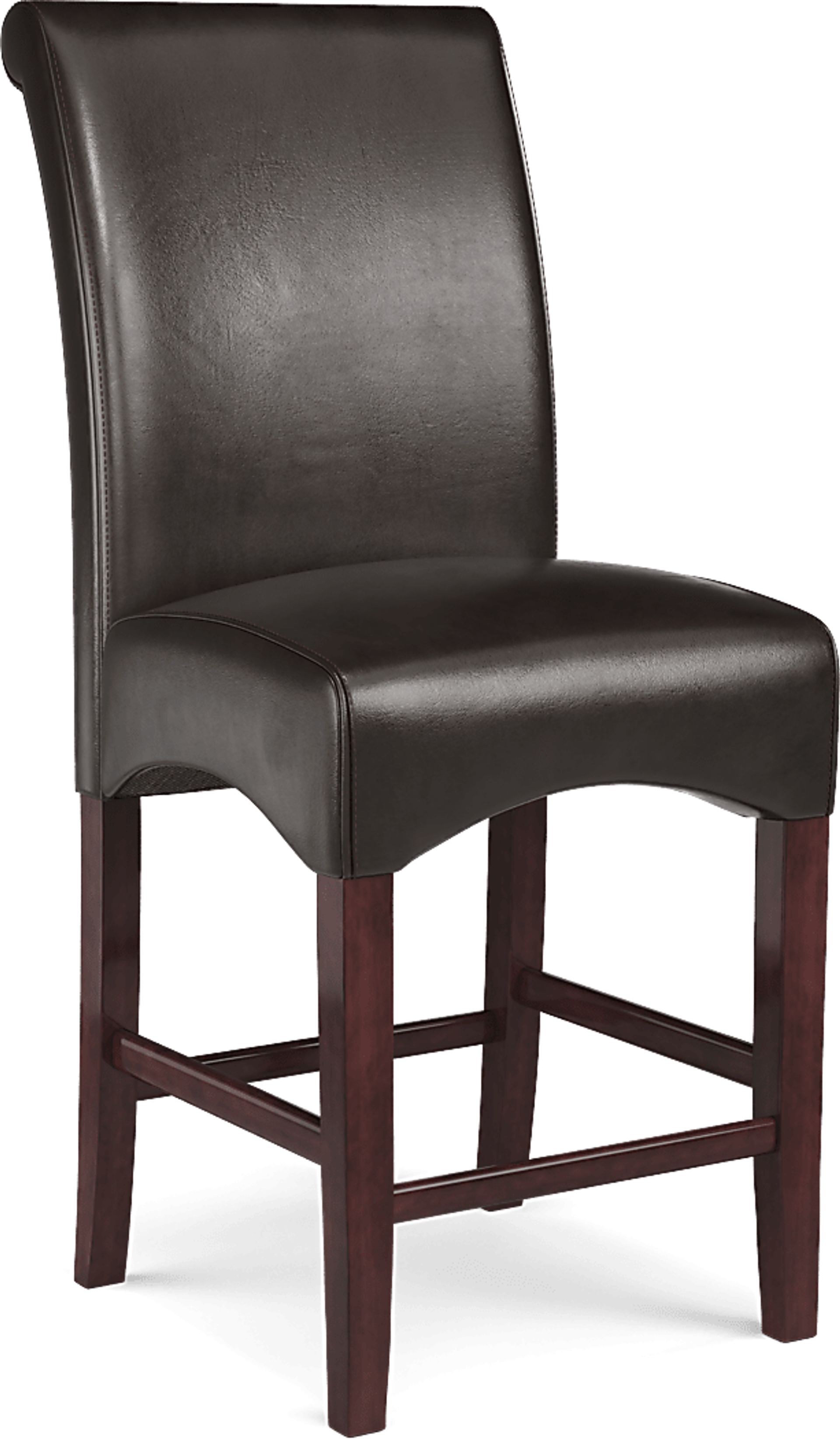 The Watercolor counter height stool offers comfortable and stylish seating for almost any dining area. Ultrahyde upholstery in a rich chocolate brown color is supple, durable and easy to clean. Stitching detail enhances the back of the chair. A padded seat and merlot finished wood legs provide support.