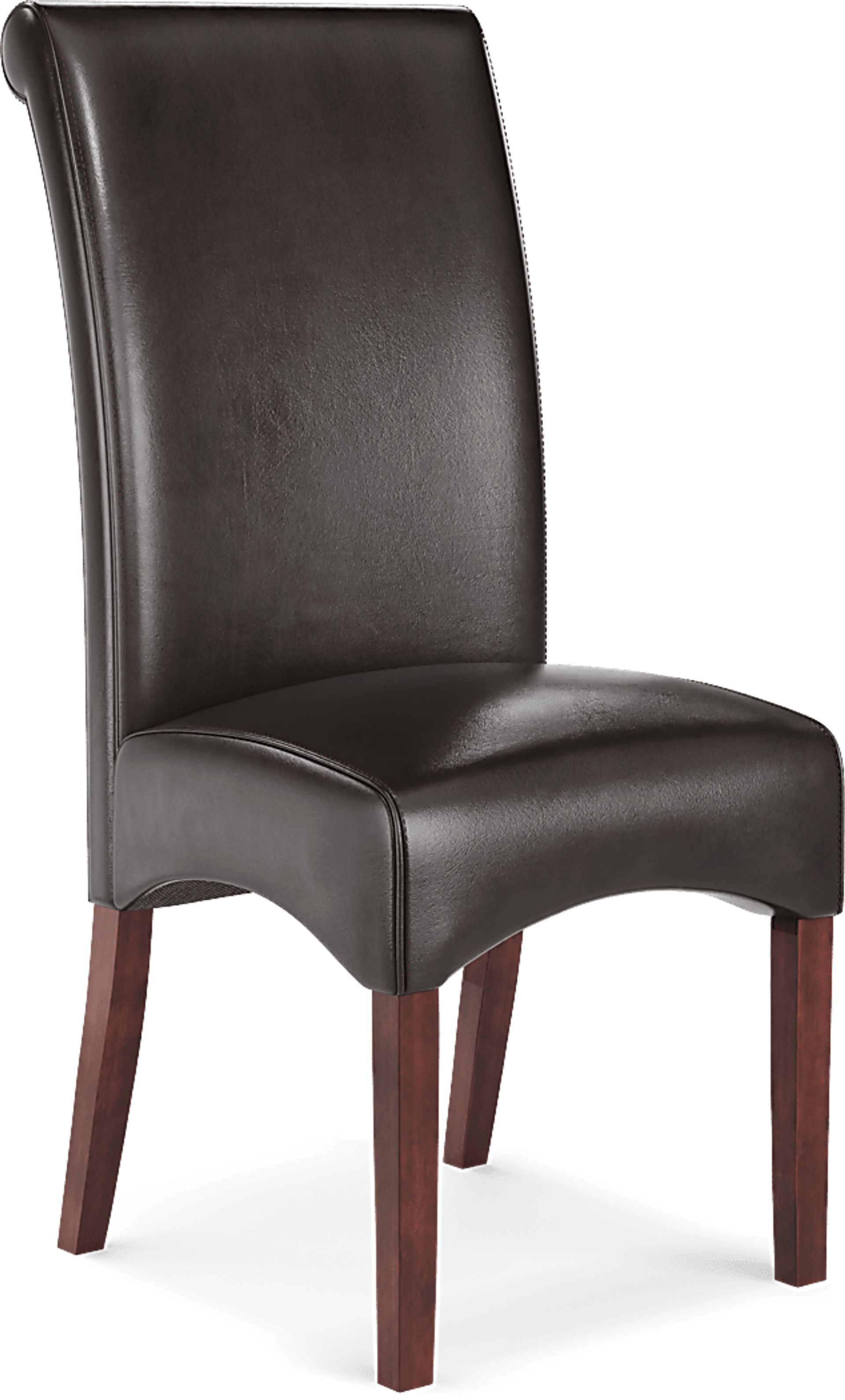 The Watercolor side chair offer comfortable and stylish seating for almost any dining area. Ultrahyde upholstery in a rich chocolate brown color is supple, durable and easy to clean. Stitching detail enhances the back of the chair. A padded seat and merlot finished wood legs provide support.