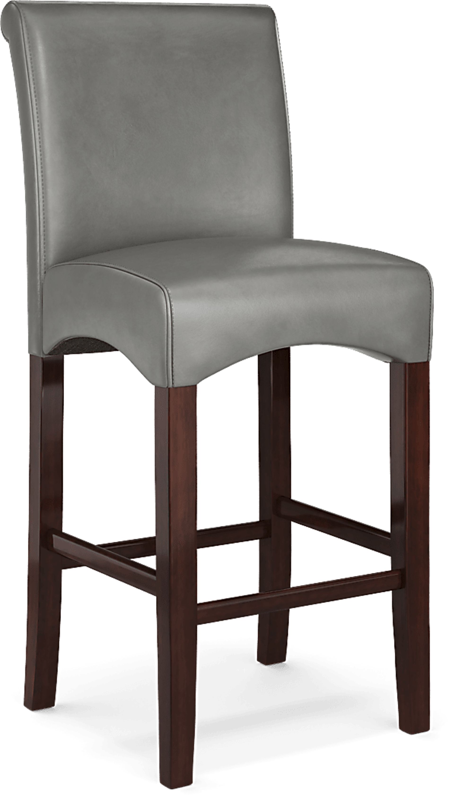 The Watercolor barstool offers comfortable and stylish seating for almost any dining area. Ultrahyde upholstery in a light charcoal color is supple, durable and easy to clean. Stitching detail enhances the back of the chair. A padded seat and merlot finished wood legs provide support.
