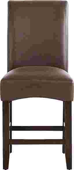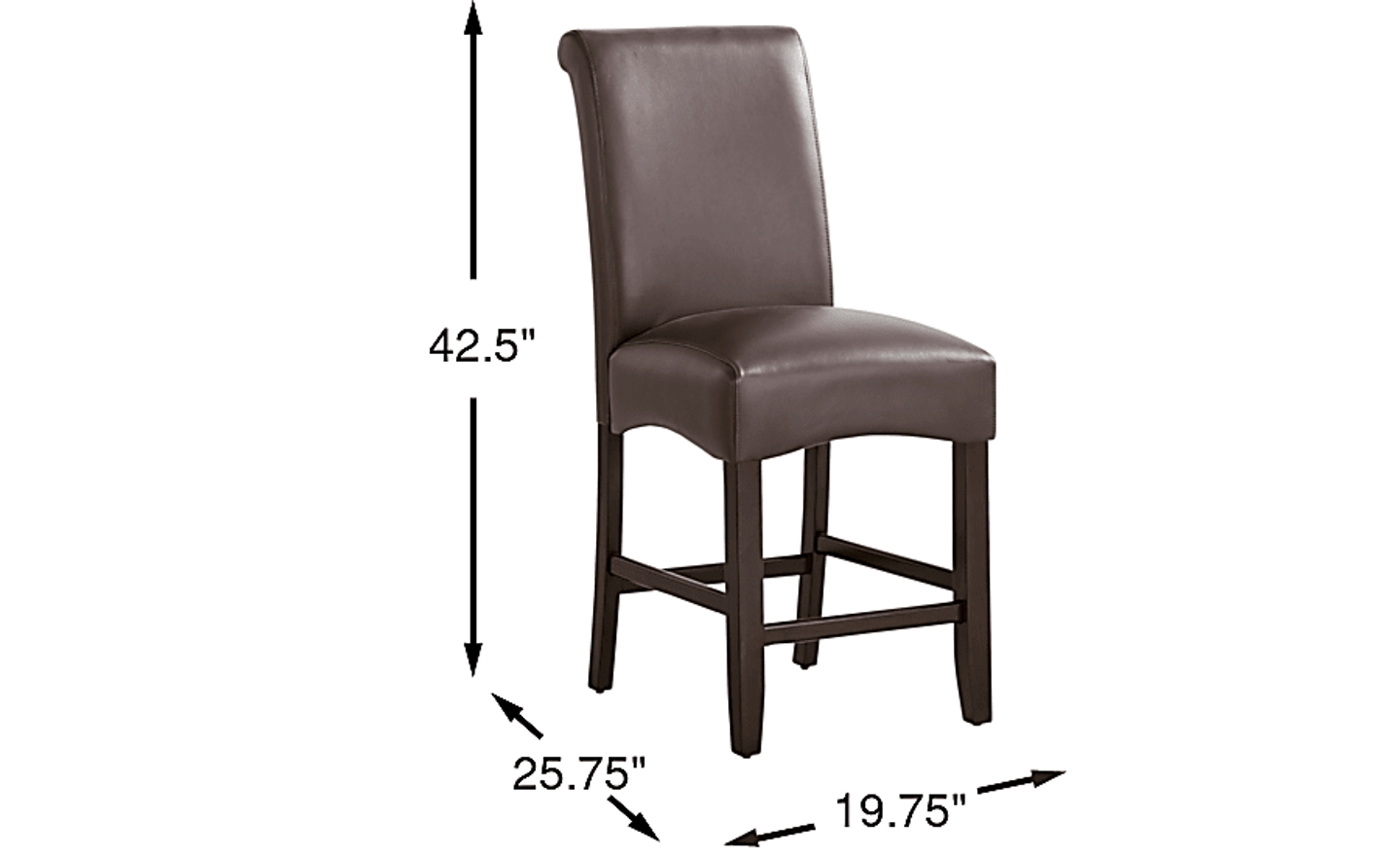 A bold pop of color brings fresh energy to the table with the Watercolor collection, where modern simplicity meets an effortlessly elevated feel. Contemporary in style, this stool is upholstered in smooth chocolate vinyl for a rich, polished look that's easy to wipe clean after everyday meals. A gently contoured back and cushioned seat offer comfortable support, while counter height straight legs in an espresso finish ground the silhouette with a sleek, refined touch.