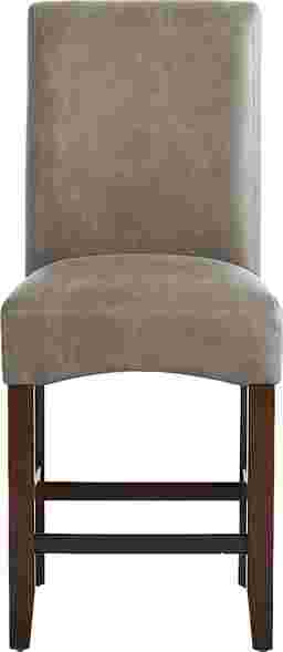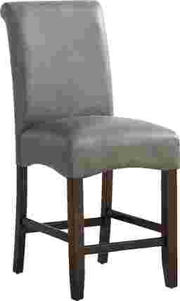 A bold pop of color brings fresh energy to the table with the Watercolor collection, where modern simplicity meets an effortlessly elevated feel. Contemporary in style, this stool is upholstered in smooth gray vinyl for a rich, polished look that's easy to wipe clean after everyday meals. A gently contoured back and cushioned seat offer comfortable support, while counter height straight legs in an espresso finish ground the silhouette with a sleek, refined touch.