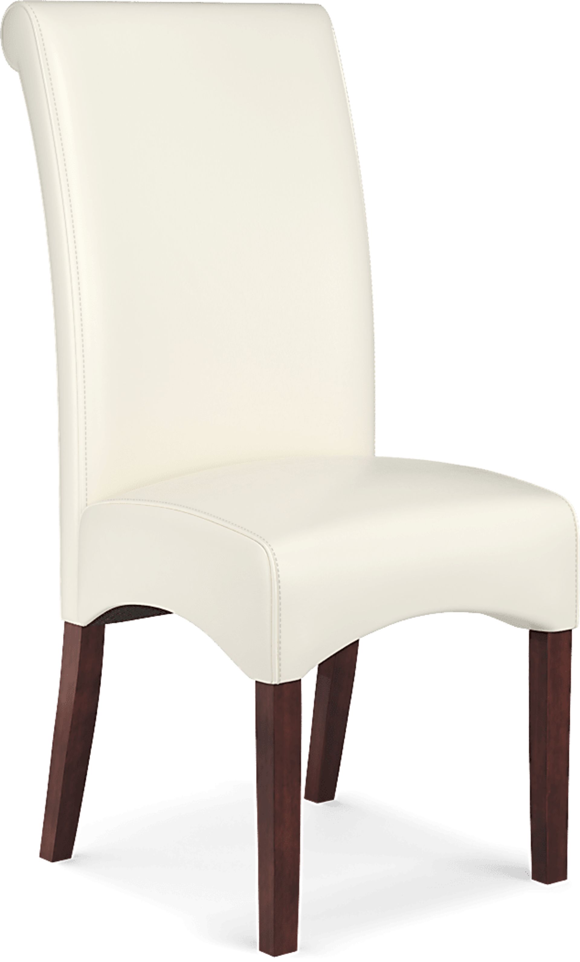 The Watercolor side chair offer comfortable and stylish seating for almost any dining area. Ultrahyde upholstery in a chic ivory color is supple, durable and easy to clean. Stitching detail enhances the back of the chair. A padded seat and merlot finished wood legs provide support.