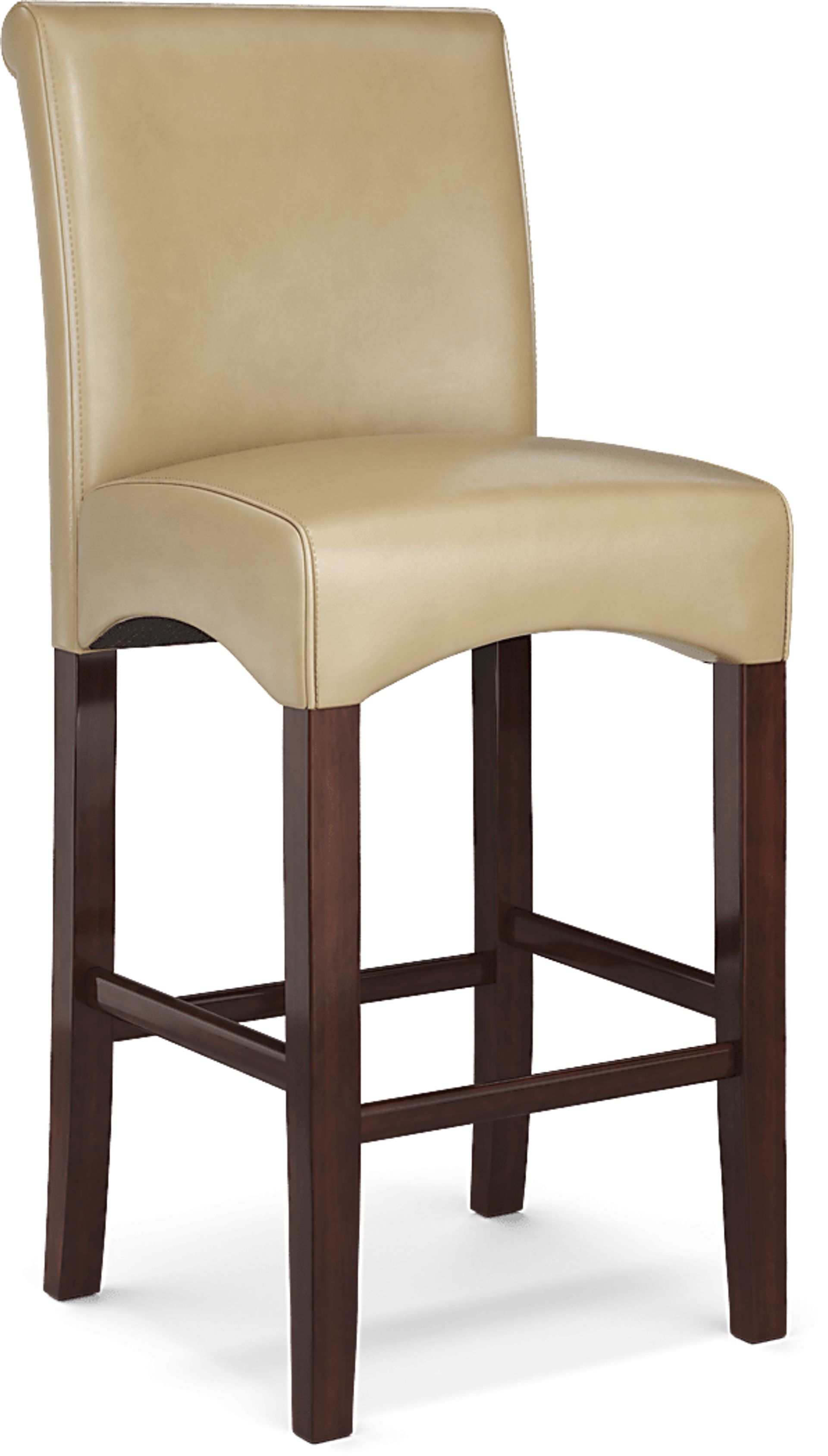 The Watercolor barstool offers comfortable and stylish seating for almost any dining area. Ultrahyde upholstery in a neutral fawn tan color is supple, durable and easy to clean. Stitching detail enhances the back of the chair. A padded seat and merlot finished wood legs provide support.
