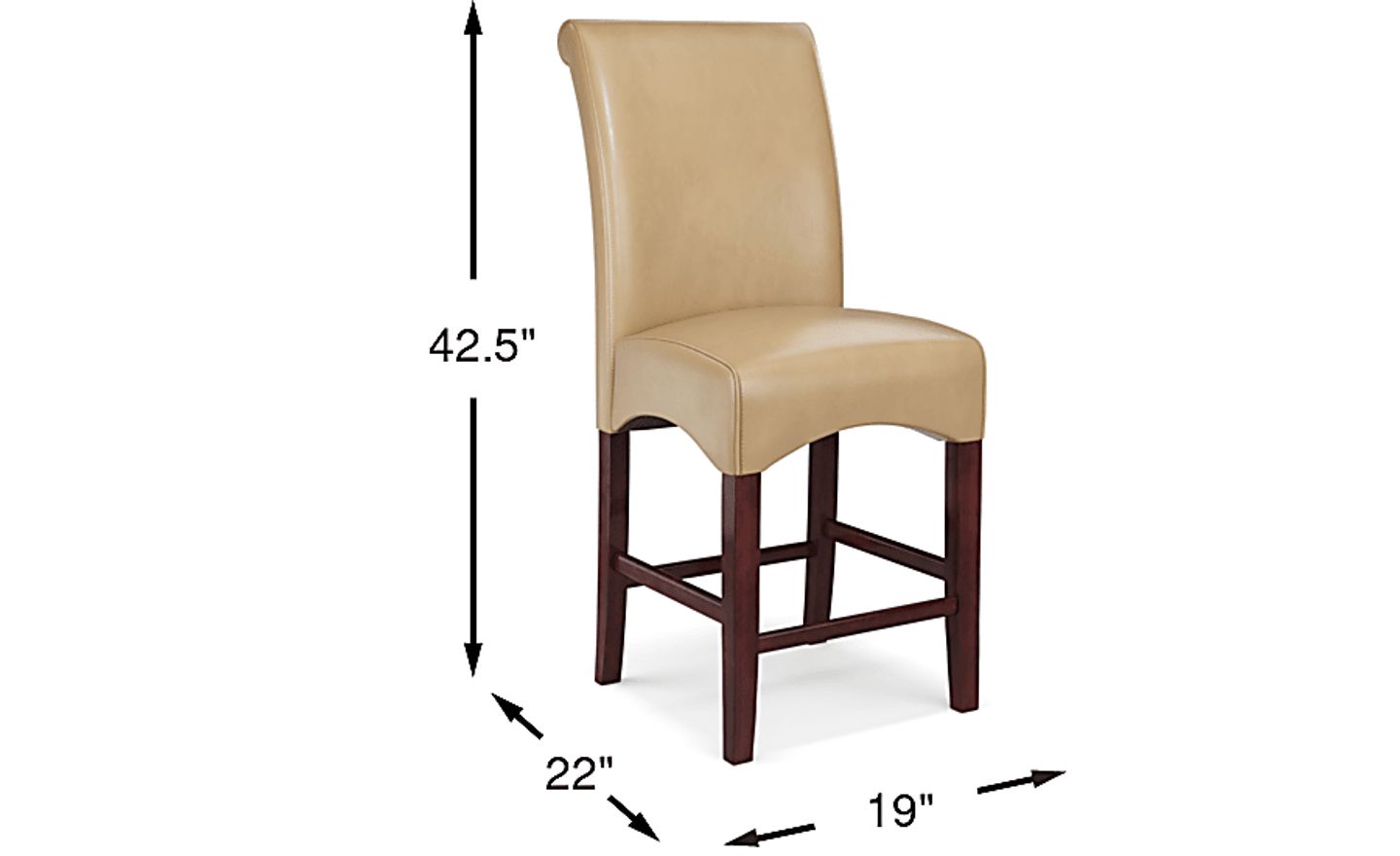 The Watercolor counter height stool offers comfortable and stylish seating for almost any dining area. Ultrahyde upholstery in a neutral fawn tan color is supple, durable and easy to clean. Stitching detail enhances the back of the chair. A padded seat and merlot finished wood legs provide support.