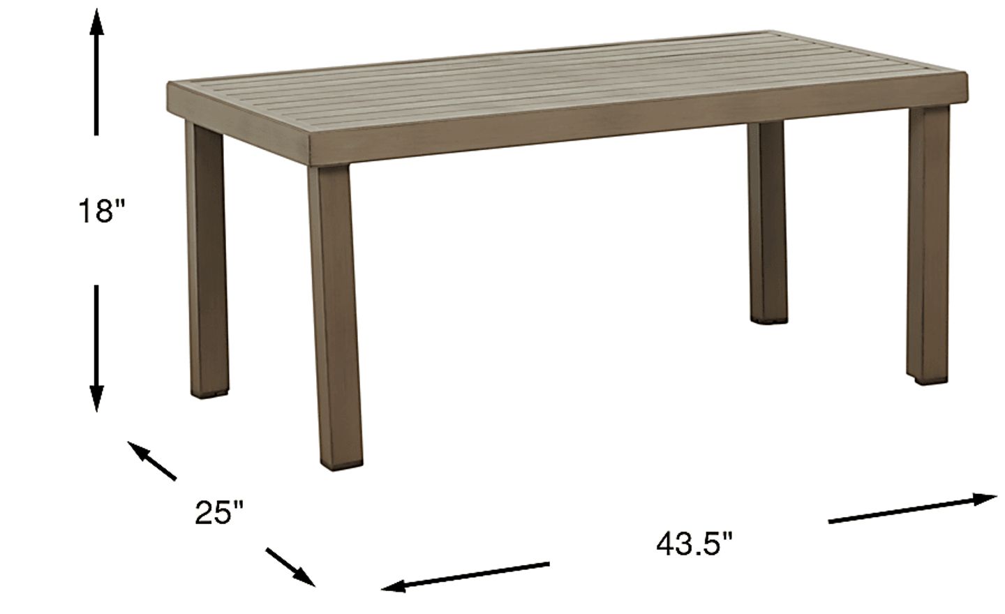 The Waterfront cocktail table is ideal for holding little umbrella drinks and snacks. This slatted rectangular top table is crafted from bronze finished all-welded rustproof aluminum for long lasting durability.